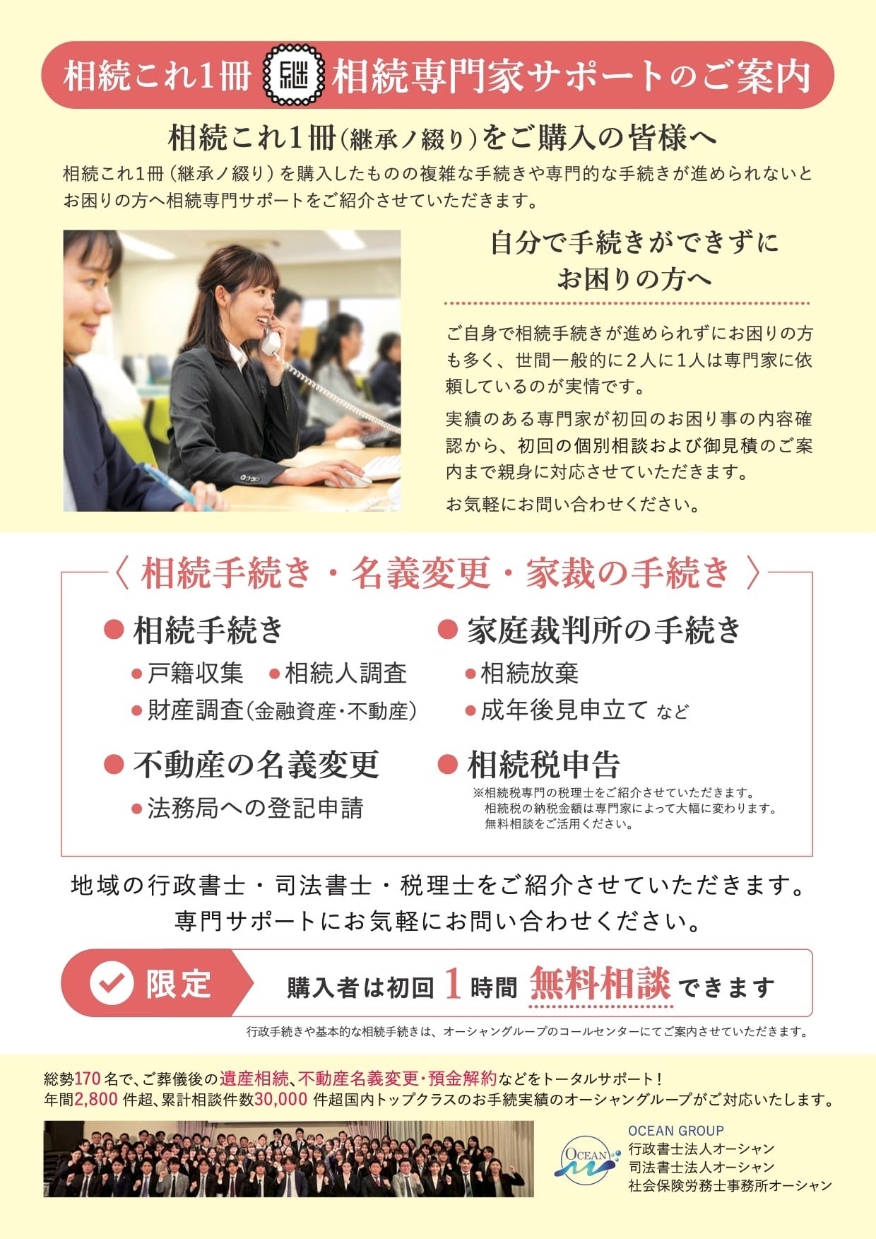 この商品は専門家への紹介ビジネスや法律手続き代行ではなく、“自分で相続が解決できるようにする”ためのあなた専用の相続サポートファイルです。(専門家にも相談できる仕組みも備えています)